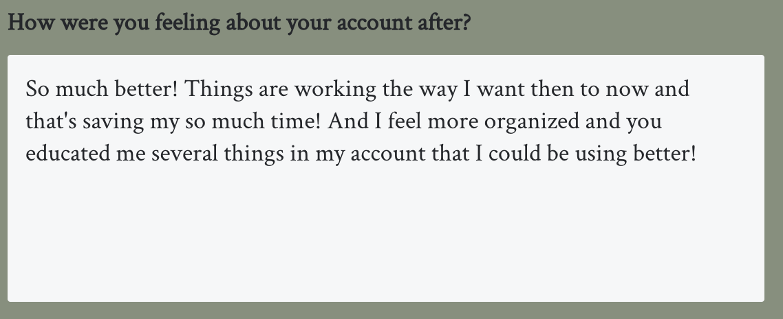 These are just a few students who’ve simplified their business and regained control of their workflow using the systems I teach.